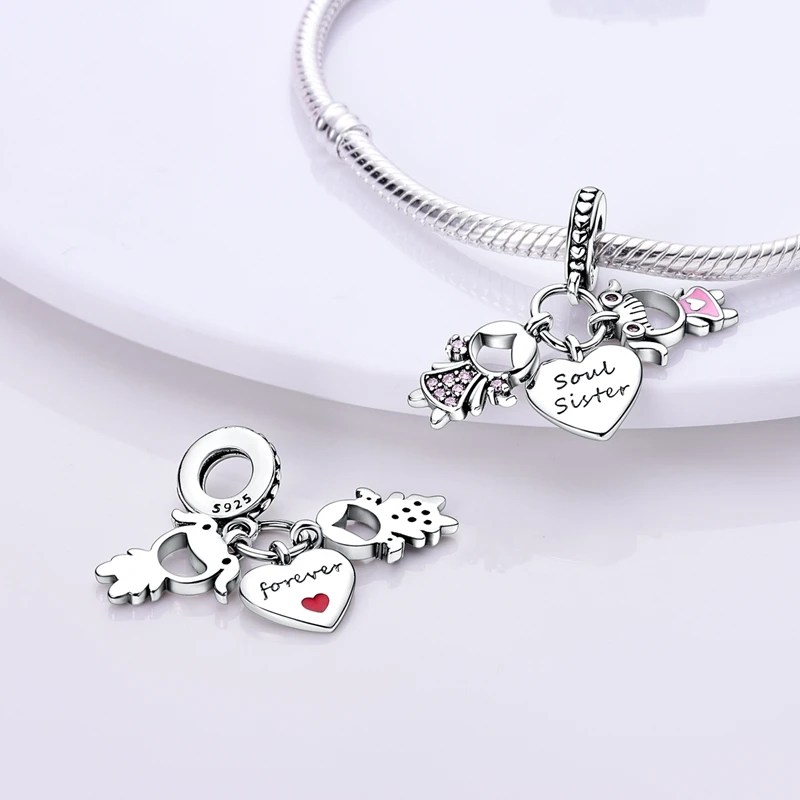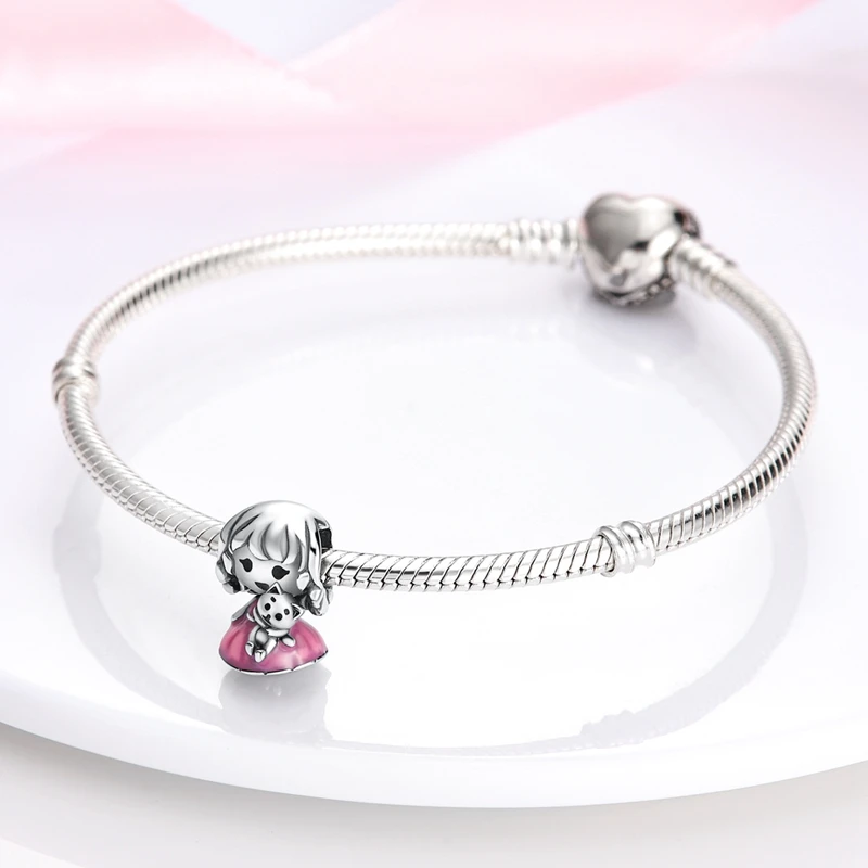 925 Plata de Ley Serie Rosa Charms Pajarita Niña Pastel Princesa Cuentas Colgante Ajuste Original Pulsera DIY Joyería Regalo Para Mujer