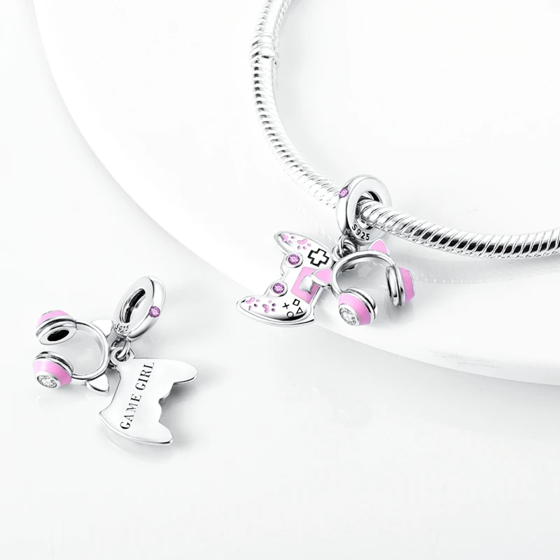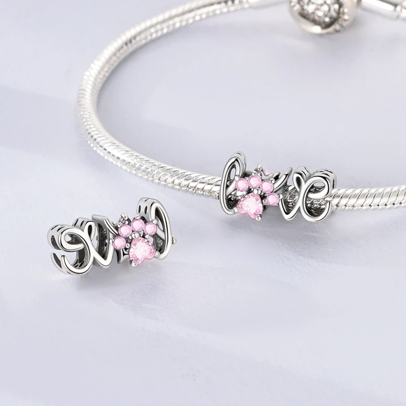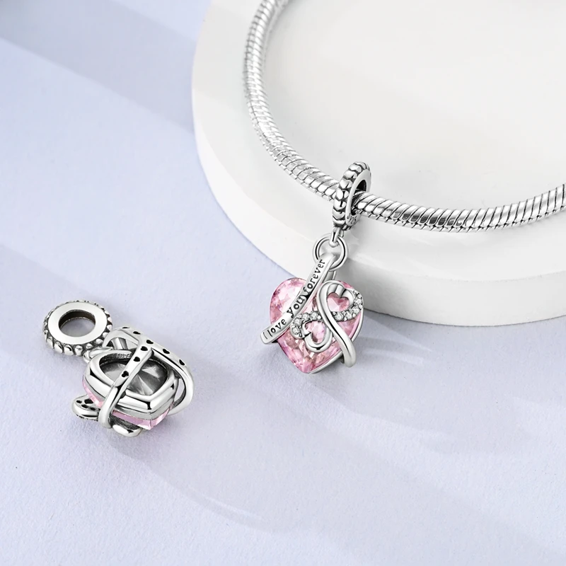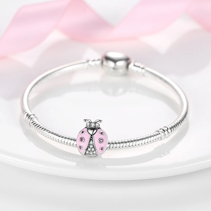 Número de modelo: 925 Sterling Silver Pink Series Beads Pendants Bow Tie Dangle