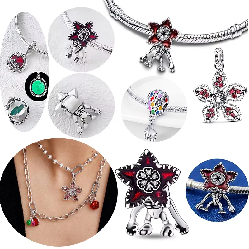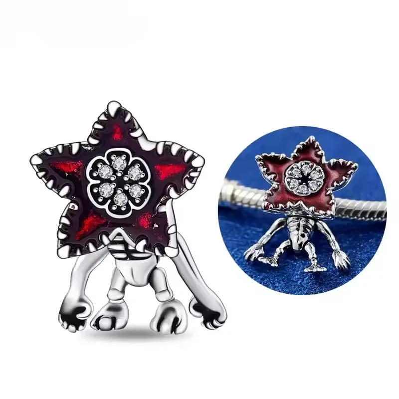 Abalorios de Plata de Ley 925 con Diseño de Demogorgon Móvil, Compatibles con Pulseras de Cadena de Serpiente con Cierre Original, Joyería DIY, Regalo