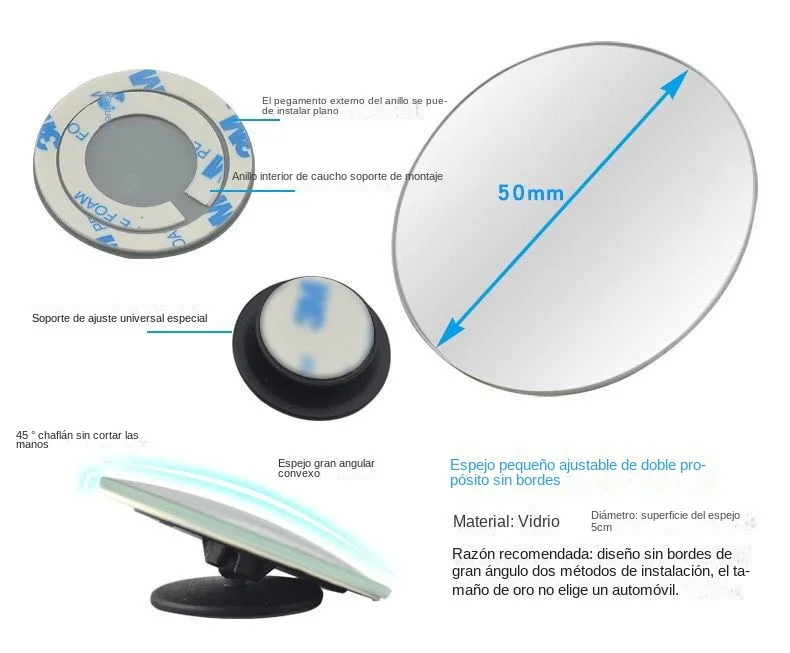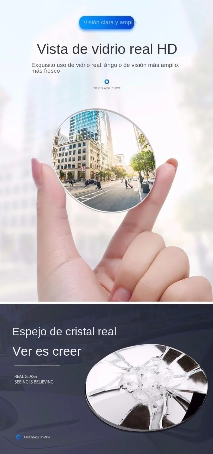 Espejo retrovisor de punto ciego para coche, espejo redondo pequeño ajustable de 360 grados, convexo auxiliar de marcha atrás