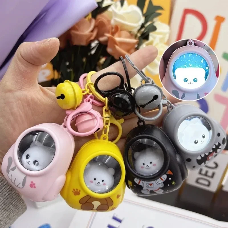 Lindo llavero de oso brillante llavero con luz nocturna gato luminoso cielo estrellado mochila llavero encantador bolso para teléfono móvil regalos colgantes