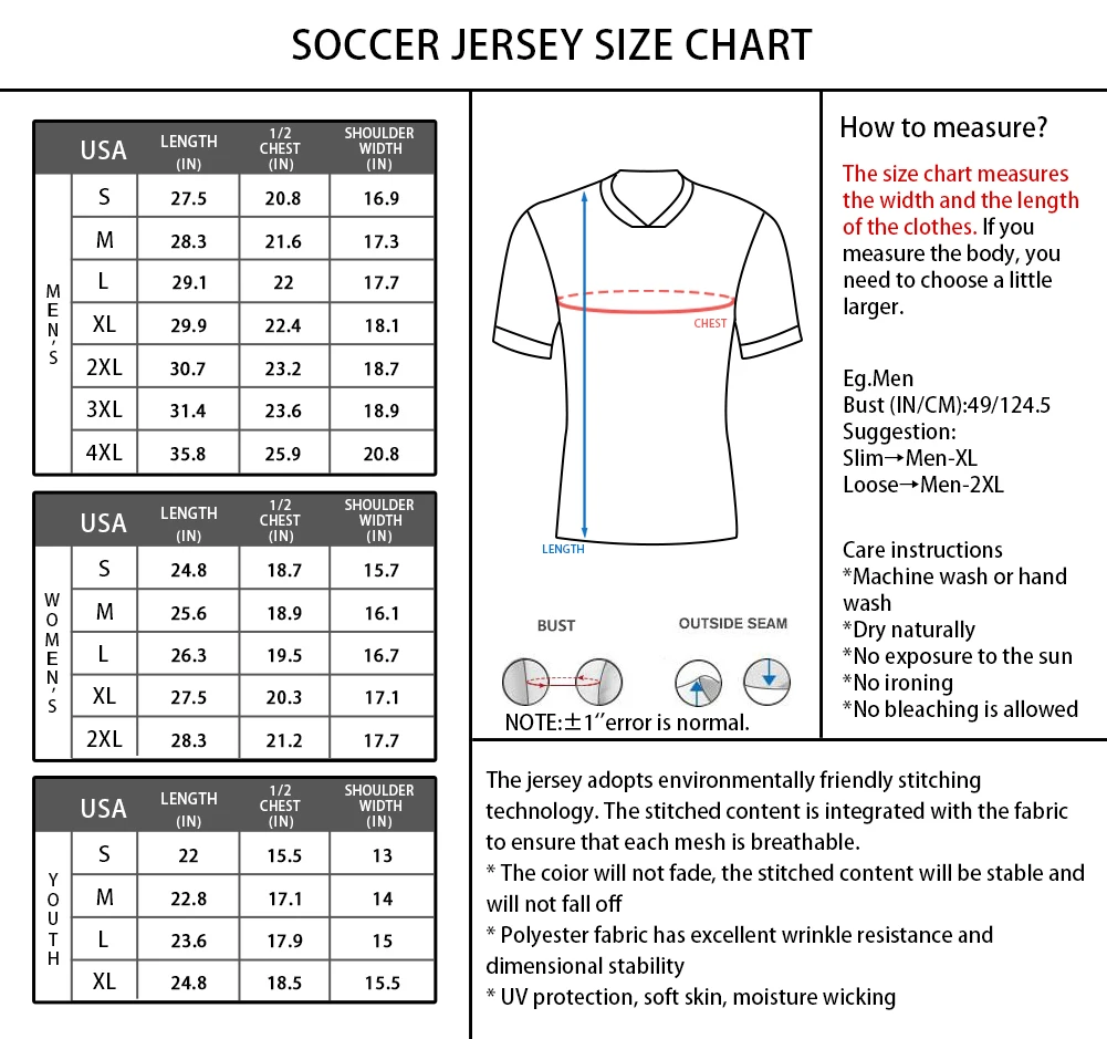 🎯 Versatile Fit for Everyone: Unisex design available in Men's Sizes S–4XL, Women's Sizes S–2XL, and Youth Sizes S–XL. Ideal for soccer training, practice sessions, matches, fan apparel, or team photos.