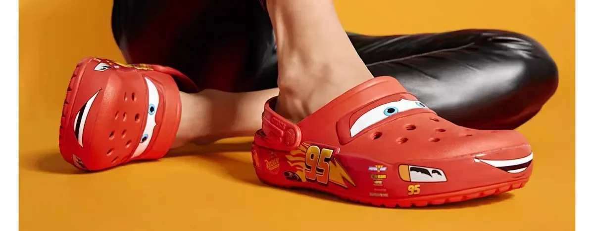 Disney Lightning McQueen Pixar Cartoon Solid Waterproof Sneakers, Outdoor Beach Shoes, Casual Ankle Wrap Sandals, EVA Shoes